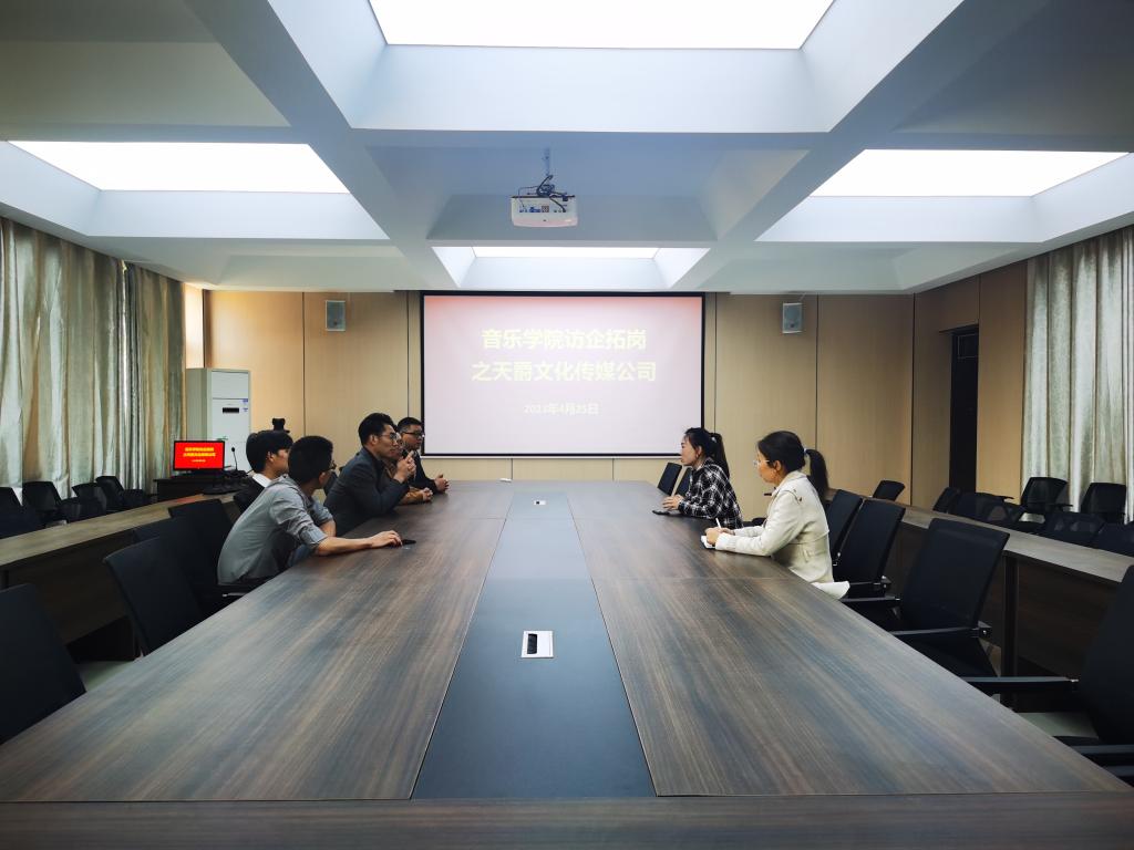 为落实学校关于“访企拓岗促就业”专项行动的要求,拓宽毕业生就业渠道,推进2023届毕业生就业工作,4月25日下午,河南天爵文化传媒有限公司一行来音乐学院参观考察并参加校企合作洽谈会,音乐学院学工秘书李平、毕业班辅导员姚垚、李艳玲接待了熊经理一行。