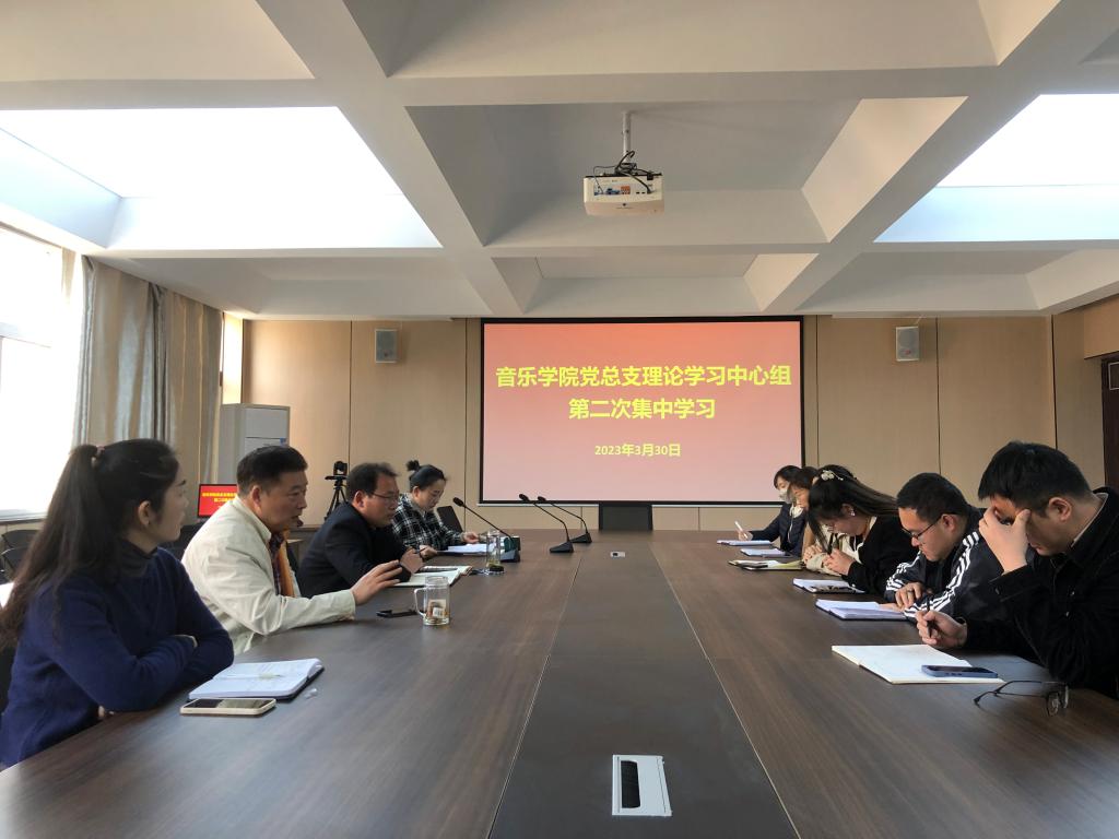 3月30日下午,音乐学院党总支理论学习中心组在艺术楼215会议室开展集中学习暨学生工作会议。党总支书记郑山峰主持会议。院长王凯歌、副院长杨辉,以及各支部书记和全体辅导员参加了会议。