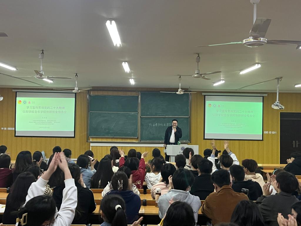 为提升我院学生创新创业意识,激发创新创业热情,3月14日晚,在艺术楼101教室,我院召开创新创业培训讲座。河南省中灏教育科技有限责任公司董事长、党支部书记孔令龙,作为主讲嘉宾参加了会议。音乐学院党总支书记郑山峰、学工秘书李平、学院辅导员及各年级学生代表共计200多名同学聆听了讲座。