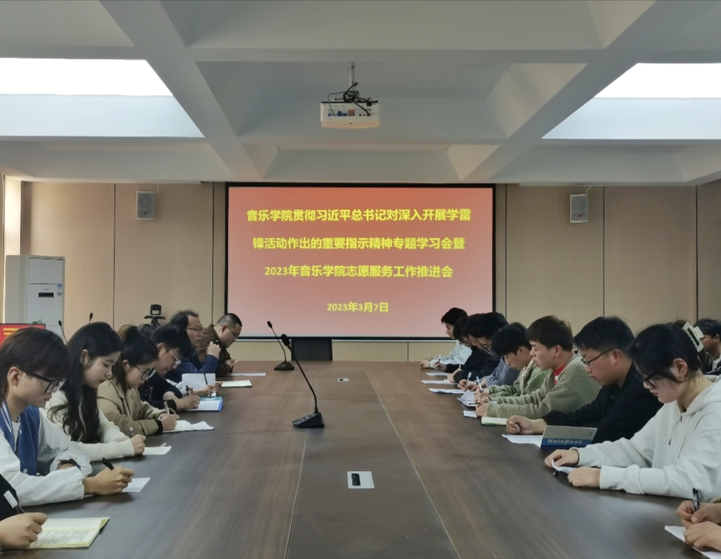 3月7日中午,音乐学院举行习近平总书记对深入开展学雷锋活动做出的重要指示精神专题学习会暨2023年音乐学院志愿服务工作推进会,党总支书记郑山峰,团总支书记闫贵,学生干部代表和音乐学院志愿者服务队参加了会议。