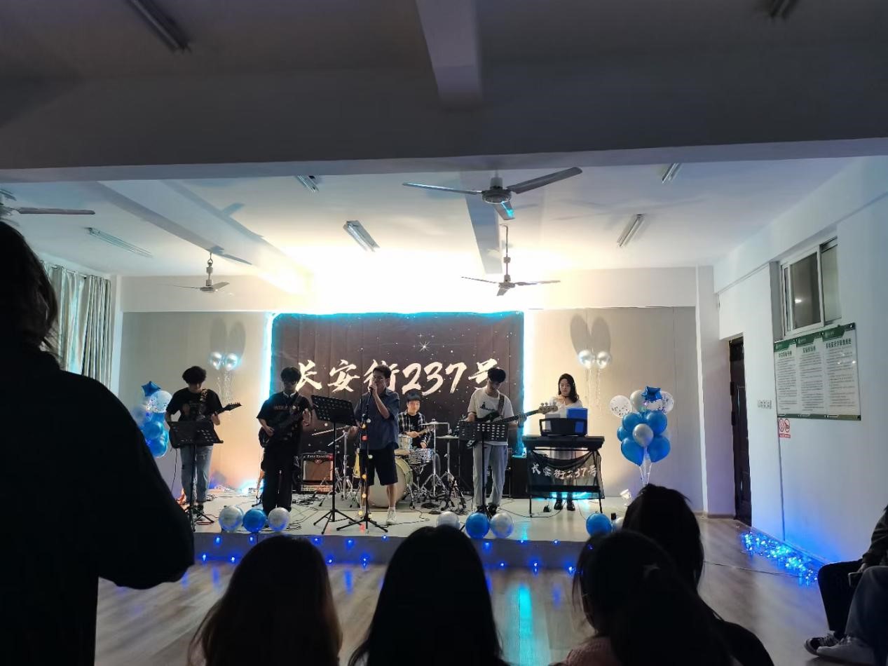5月16日,为丰富校园生活,营造校园音乐氛围和人文气息,激发校园音乐创作的精神,满足大学生的精神文化需求,纯真吉他社与长安街237号乐队举行的“夏日校园线上音乐节”在抖音上进行直播。本次的夏日校园线上音乐节不仅有长安街237号乐队的表演,还有女子乐队的倾情演出,为信阳学院的师生们带来了一场精彩的视听盛宴。