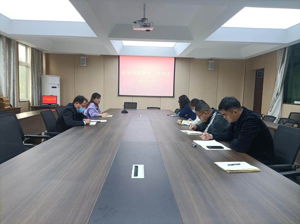 5月9日,音乐学院全体学生工作人员在艺术楼215会议室召开工作例会,专题研究疫情下的学生管理工作。党总支书记郑山峰出席会议。