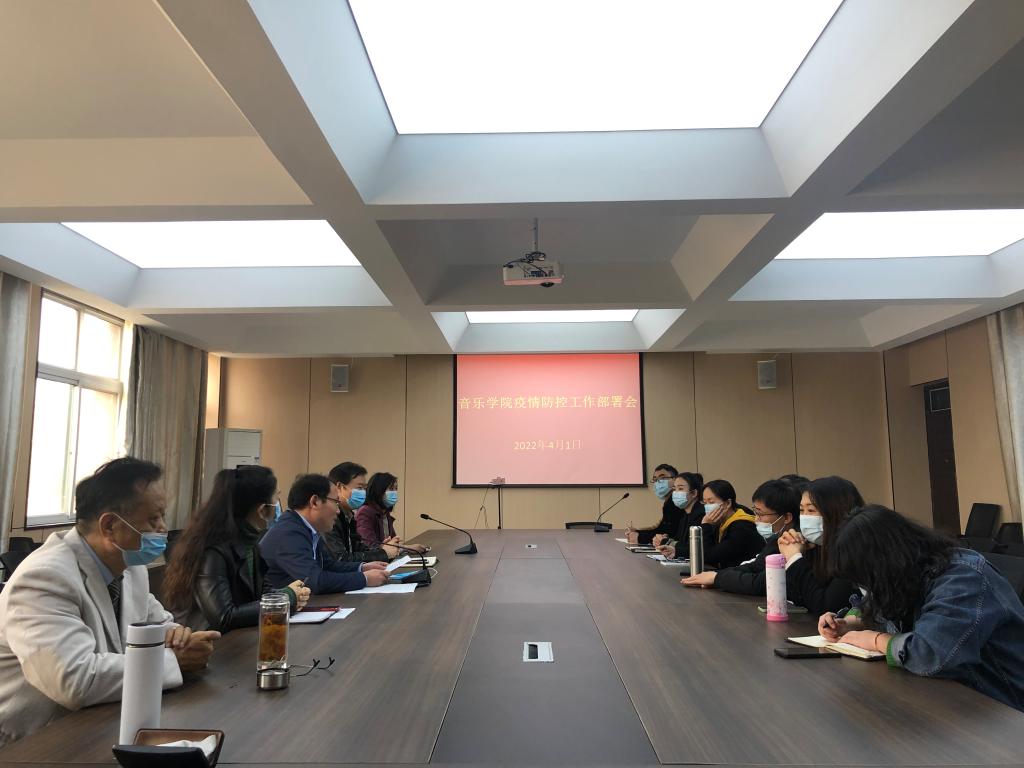 4月1日下午,音乐学院疫情防控工作部署会在艺术楼215会议室召开。院长王凯歌、教学副院长杨辉、党总支书记郑山峰等班子成员及在校教职工参加了线下会议,部分教师通过腾讯会议参加了线上会议。