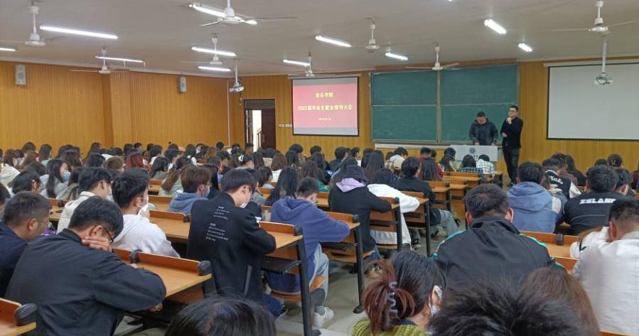 3月11日上午,音乐学院在艺术楼101召开了2022届毕业生就业指导大会,全面助力我院毕业生充分、高质量就业,毕业班辅导员闫贵和梁二豪、学工秘书李平及学院2022届毕业生参加了会议。