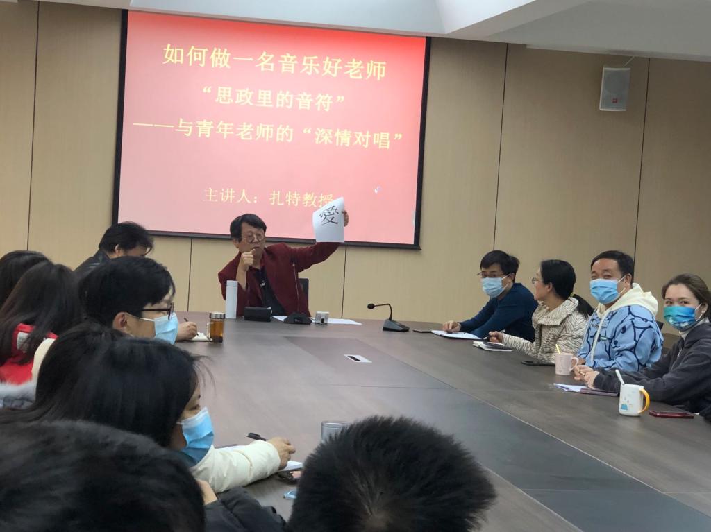 3月21日下午,音乐学院组织开展了“音乐学院开展青年教师讲座之:如何做一名合格的音乐老师”专题培训会。院长王凯歌、党总支副书记赵佳、教学副院长杨辉和全体青年教师参加了此次培训。