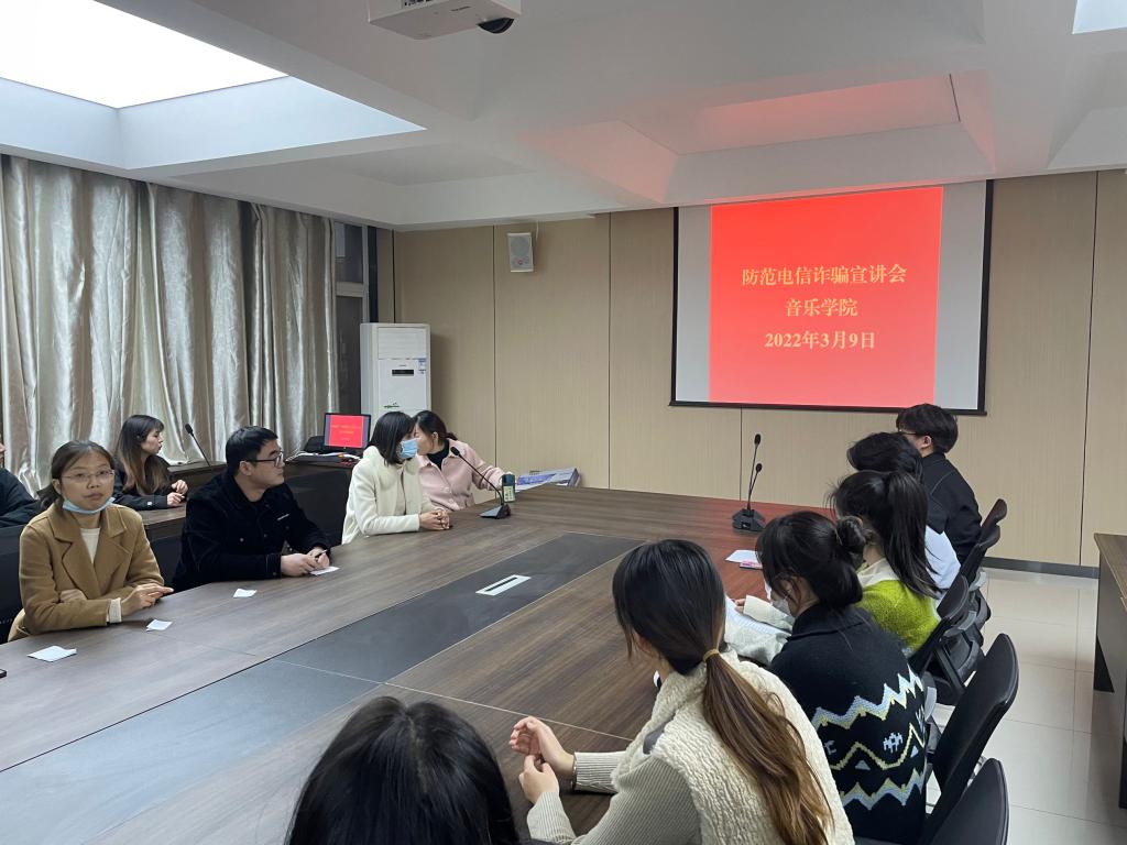 为进一步普及防范电信网络诈骗知识,有效遏制电信诈骗犯罪的高发势头,保护学生财产安全,进一步加大校园面防范宣传力度,提醒广大学生提高警惕,增强法律意识,采取防范措施。3月9日,音乐学院赵佳书记在艺术楼215办公室向参会的学生代表宣传防范电信诈骗知识,全体辅导员参与了本次会议。