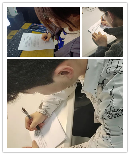 各班分别组织同学们在诚信考试承诺书上签字,并开展了“时间信封,寄语未来——写给一年后的自己”特别活动。活动中,同学们给一年后的自己写一封信,信封封口后由班委组织保存,内容完全保密,一年后发还给大家。大家纷纷在信中写下鼓励、提醒未来的自己,又或者检验自己的目标是否实现等内容。