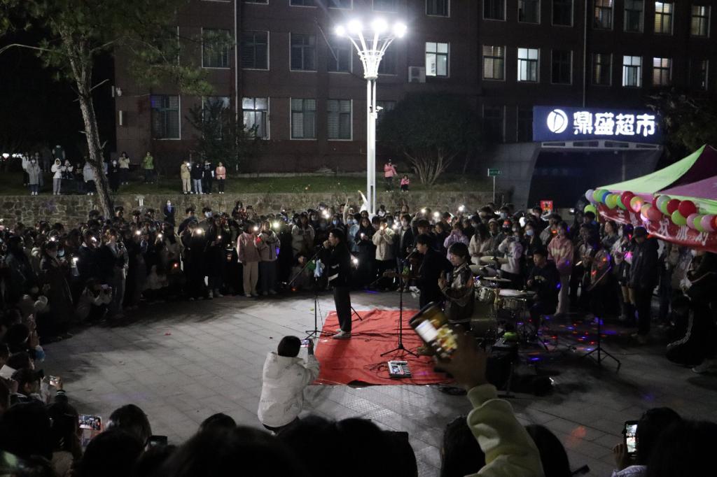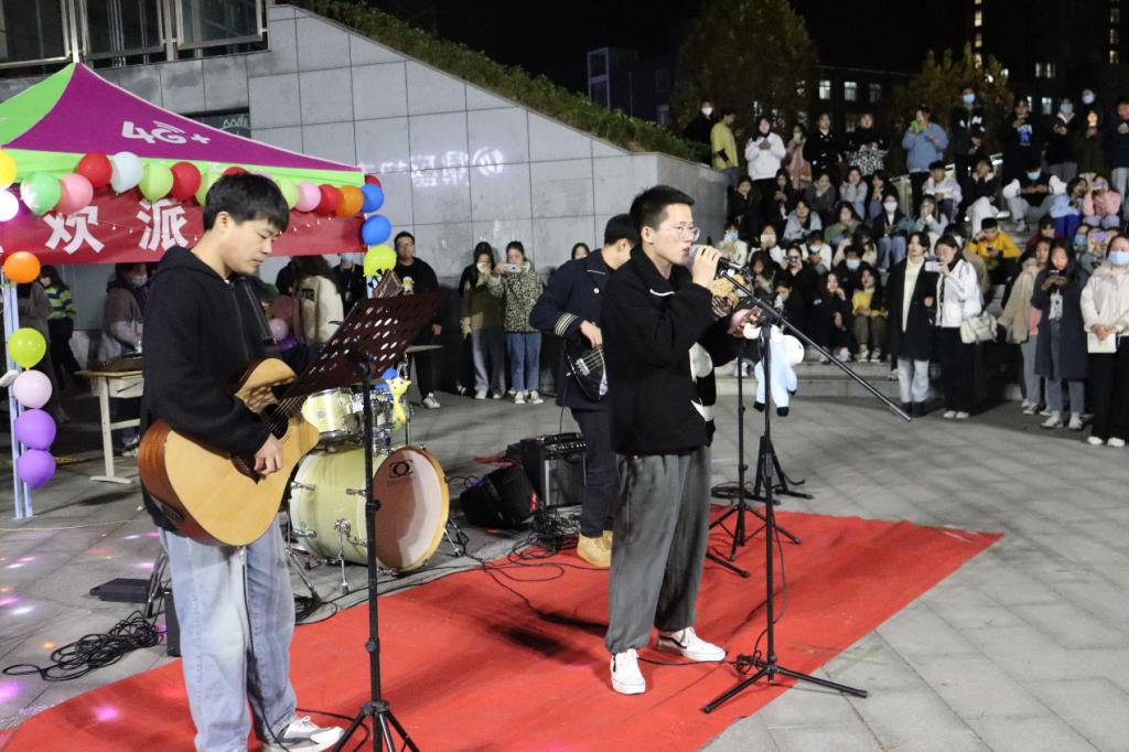 11月19日,音乐学院纯真吉他社与长安街237号乐队在音乐厅前举办“吉他狂欢派对”,吸引了众多学生热情地参与其中。