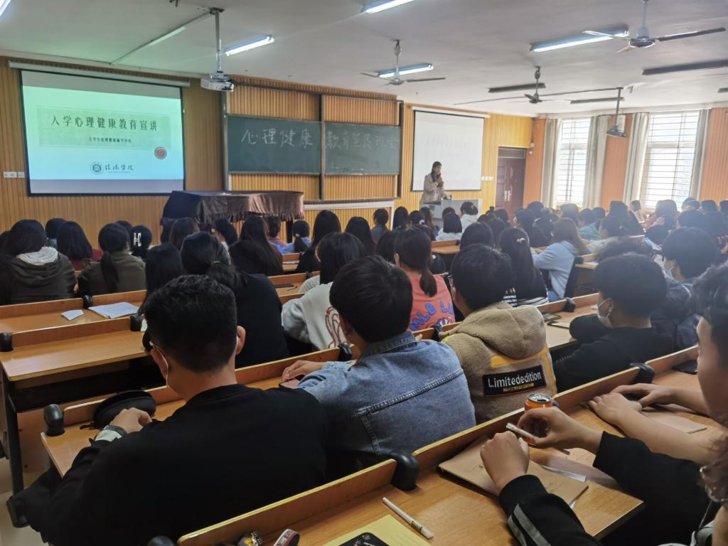 此次班会主要分为两个内容,第一,由心理健康辅导站站员带大家了解“大学生心理健康”这门课程的重要性以及相关内容。然后给大家介绍心理健康辅导站工作中心的工作环境,咨询方式和一些活动内容。第二,要求全体大一新生认真线上完成心理健康普查作业,各班心理委员负责拍照记录并统计作业完成程度。