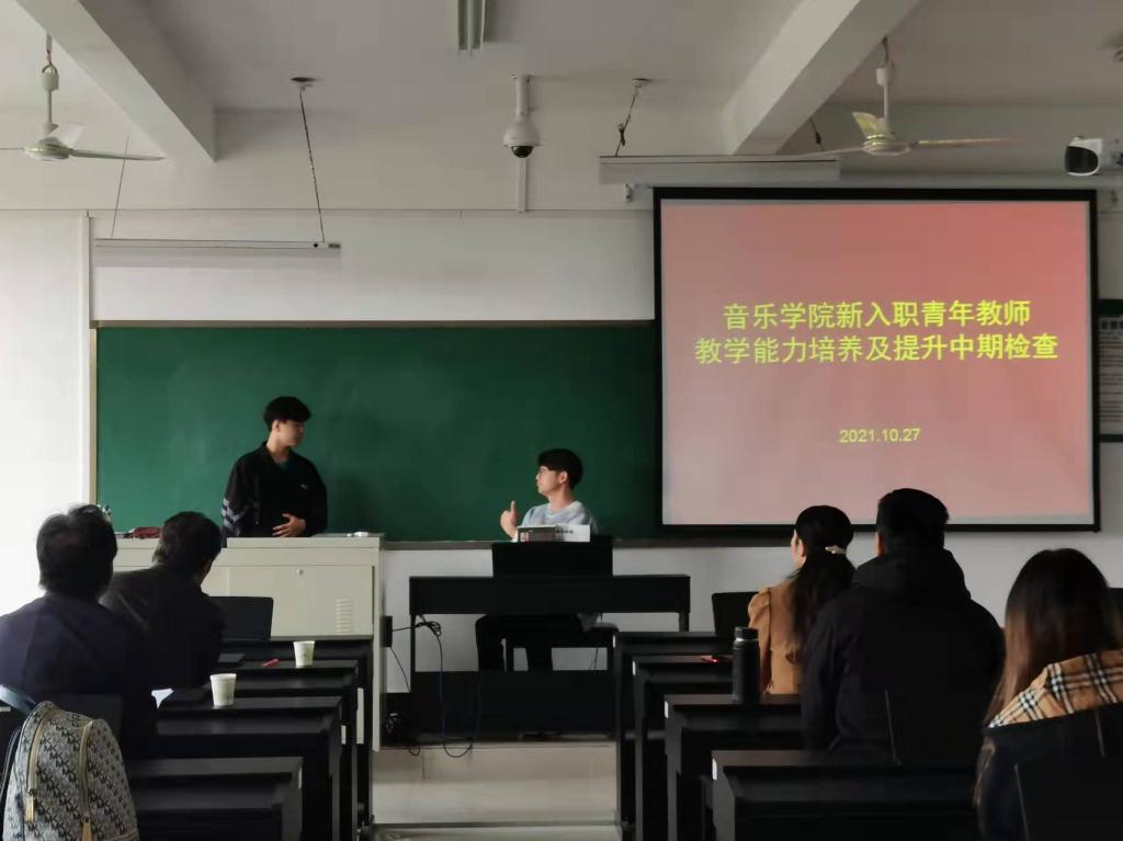 10月27日,为加强我院青年教师队伍建设,提高青年教师教学能力和水平。根据学院工作要求,我院在艺术楼303开展了新入职青年教师教学能力培养及提升中期检查工作。院长王凯歌,副院长杨辉,特聘教授王在畅、付玉兰、冯建志出席并担任评委。