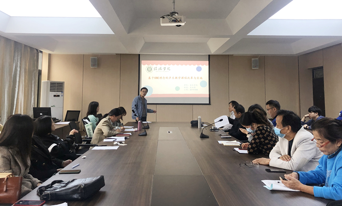 10月7日下午,音乐学院在艺术楼215会议室组织开展“六说”活动。院长王凯歌、教学副院长杨辉、党总支书记赵佳等班子成员与全体教师共同参加了会议。赵佳主持了会议。声乐与舞蹈教研室主任吕倩倩、音乐理论教研室主任邓欢欢、钢琴与器乐教研室主任胡世红及朱永昌、董康坦、朱燕、王相鸥、许驰瑶等9位教师代表,围绕人才培养目标,教育教学理念、做法,课程思政建设、等方面展开了生动解说。