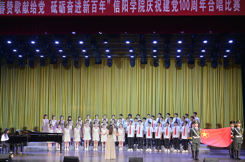 外国语学院合唱队表演的《唱支山歌给党听》拉开了比赛帷幕。比赛中,各学院合唱队统一着装、队形新颖、精神饱满、歌声嘹亮。《强军战歌》《保卫黄河》《团结就是力量》《一二三四》《光荣啊,中国共青团》气势磅礴、铿锵有力、催人奋进;《我的中国心》《我和我的祖国》《爱我中华》《国家》《没有共产党就没有新中国》《歌唱祖国》《灯火里的中国》,热情讴歌了党的丰功伟绩,唱响了青年学子对党、对祖国的深厚挚爱和无比自豪之情;《当那一天真的来临》《祖国不会忘记》抒发了所有为党和国家默默奉献人们的心声;《少年》《新征程》《走向复兴》《不忘初心》表达了青年学生对党和国家的美好祝福,坚定了青年学生坚定跟党走、奋进新时代的决心;音乐学院表演的合唱《龙的传人》和原创作品《社会主义真的好》热情赞美社会主义制度的优越性,引导学生坚定社会主义信念、为党的新百年目标而努力奋斗,将比赛推向高潮。