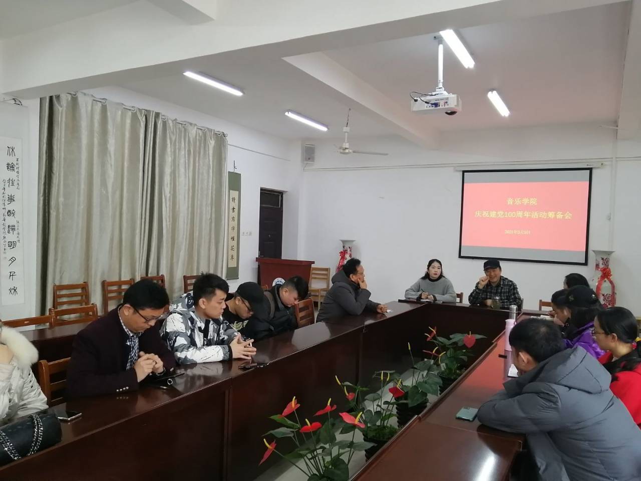 会上,院长王凯歌指出,庆祝建党100周年是党和国家的一项政治大事,要紧紧围绕学校庆祝活动的总基调和主题,坚持隆重、热烈、特色、务实原则,将心思放在如何把庆祝活动办出彩、如何把本土民俗的精华部分展现出亮点和特色上来,确保筹备工作扎实到位。