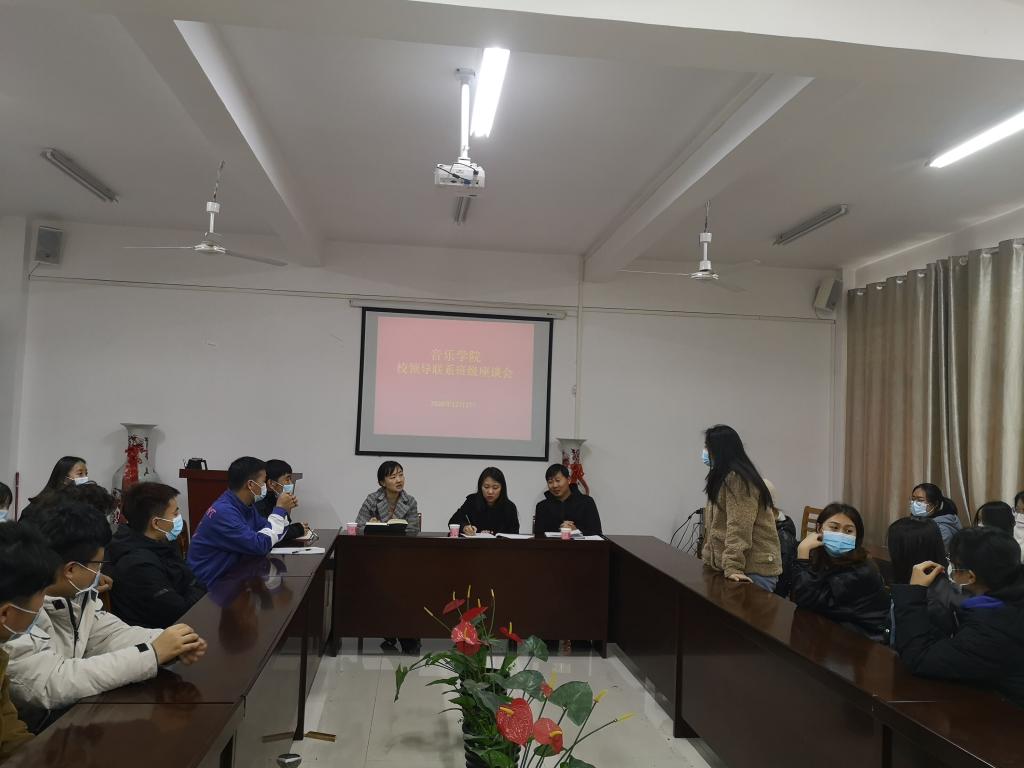 为贯彻落实校领导干部深入基层联系学生工作制度,全面落实立德树人根本任务,提升“三全育人”工作质量。12月2日下午,校长助理高雅在音乐学院党总支副书记陈金强的陪同下深入2018级音乐学本科1班召开学生座谈会。座谈会在艺术楼215会议室举行,学工干事朱亚楠、团总支书记裴奇及全班同学参加了会议。