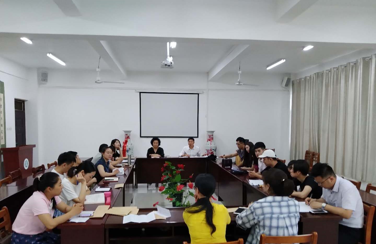 6月19日,音乐学院在艺术楼215会议室召开2018-2019学年期末考核工作会议。参会人员有音乐学院院长吴柏林、党总支副书记陈金强、教学秘书杨辉、学工干事王丽及全体教师。会议由陈金强书记主持。