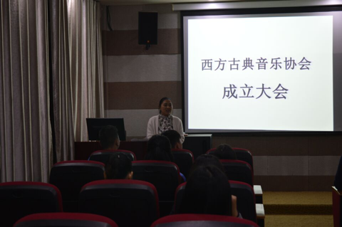 2017年11月1日晚,我院在艺术楼205教室举行“西方古典音乐协会成立大会”。此次活动由协会指导教师邓欢欢老师主持,副校长王志华也出席了本次活动。