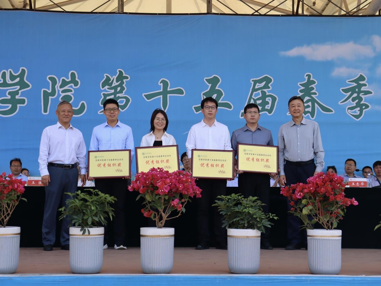 青春赛场,活力飞扬。4月18日,信阳学院第十五届运动会于学校田径场圆满落下帷幕。我院作为本次校运会的主办方之一,共有16位师生参加了开幕式,25位教师和63位同学参加了运动会中的田赛和径赛项目。师生运动员们凝心聚力、锐意进取,在竞技场上展现了别样青春风采,为我院争得了多项荣誉。