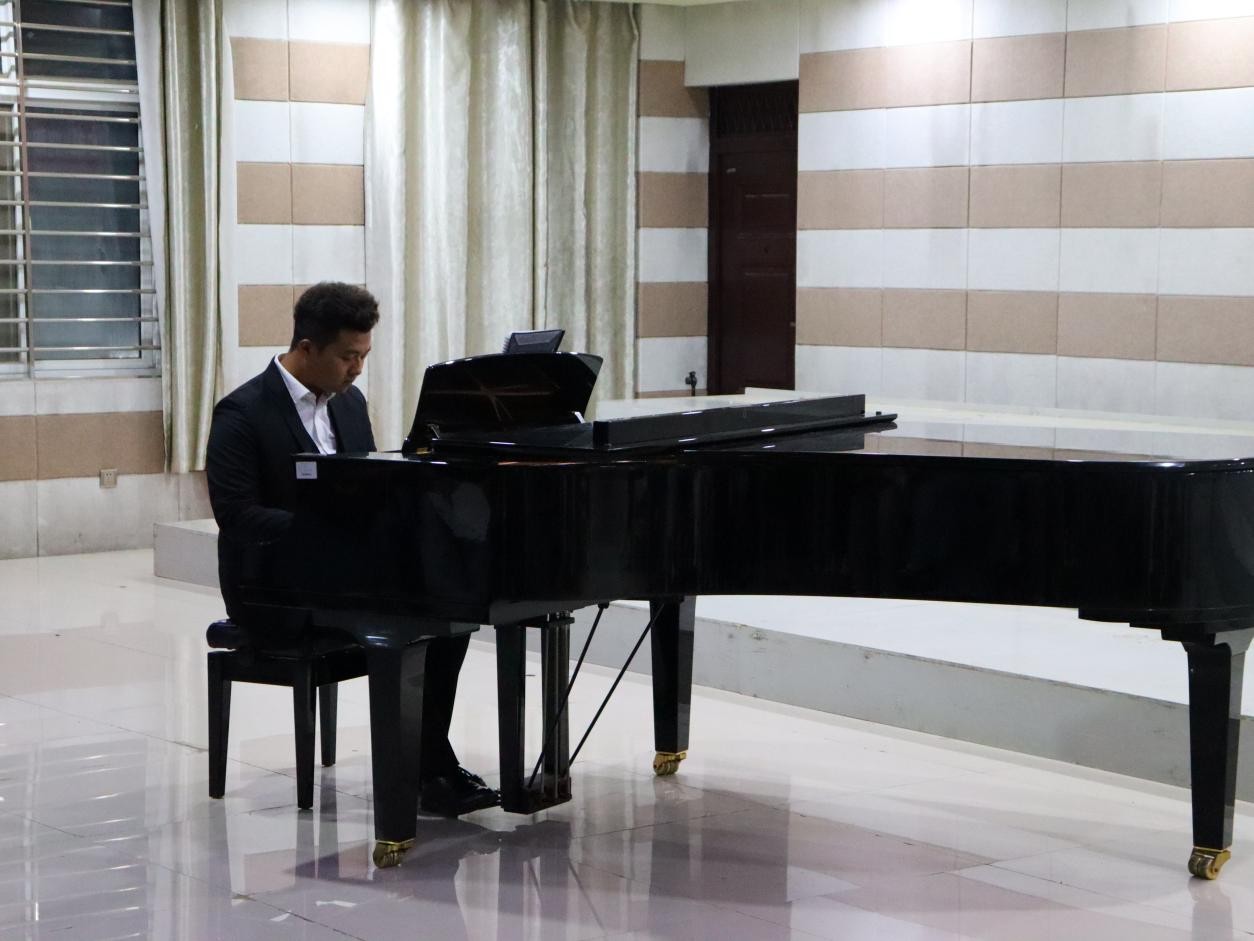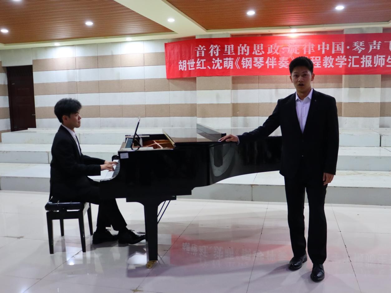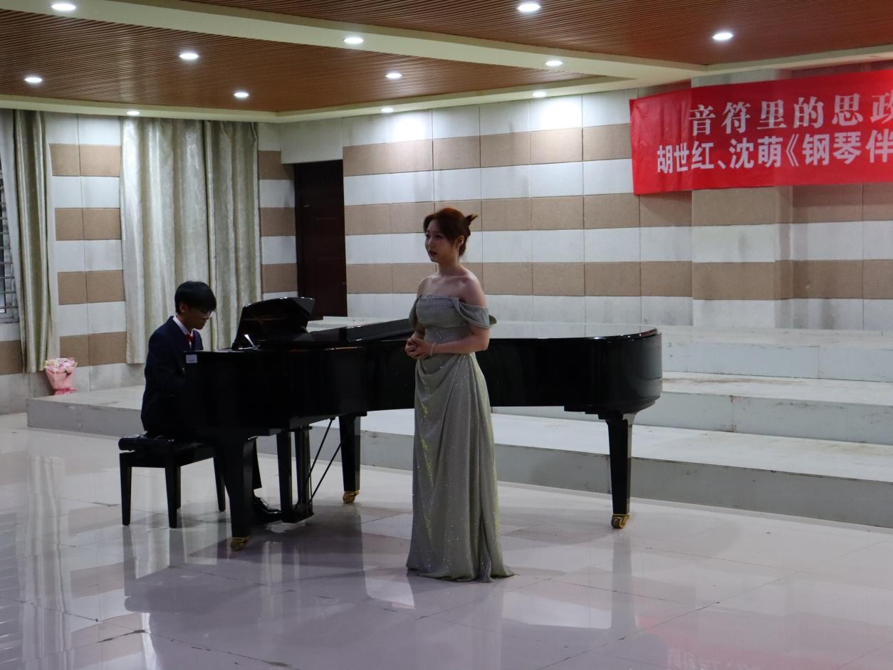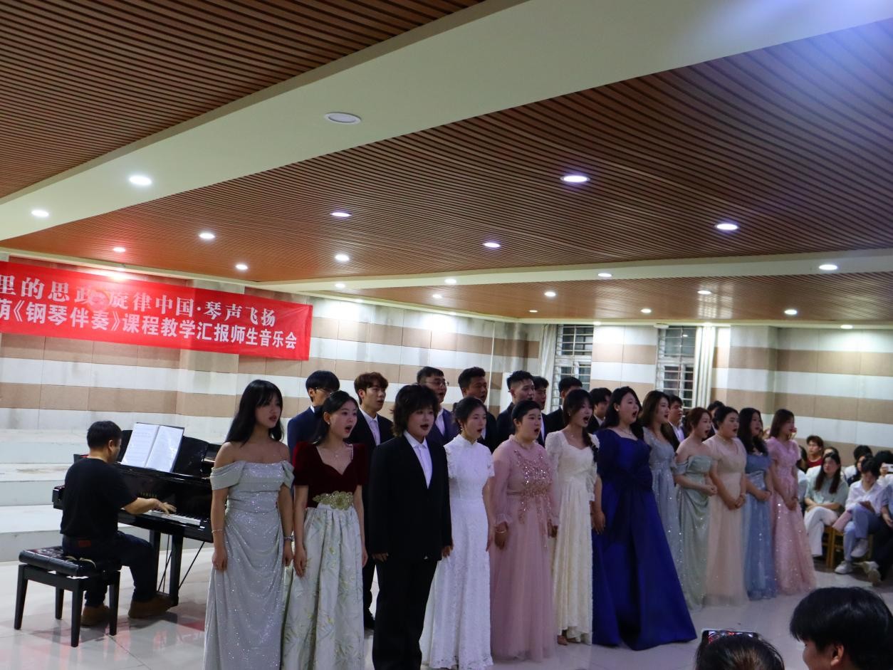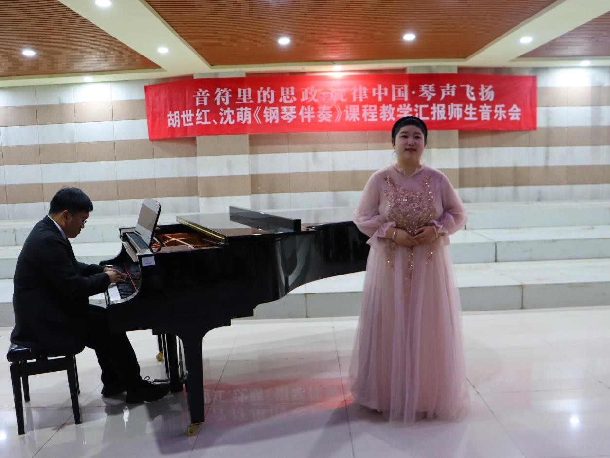 5月14日晚,音乐学院”音符里的思政”之“旋律中国·琴声飞扬”胡世红、沈萌《钢琴伴奏》教学汇报师生音乐会在艺术楼201成功举行。本次音乐会精选了《天边有颗闪亮的星》《祖国,慈祥的母亲》《我爱你,中国》等十余首脍炙人口的经典歌曲,用钢琴伴奏和歌声来表达对党和祖国的忠诚、热爱、感激、崇敬之情。