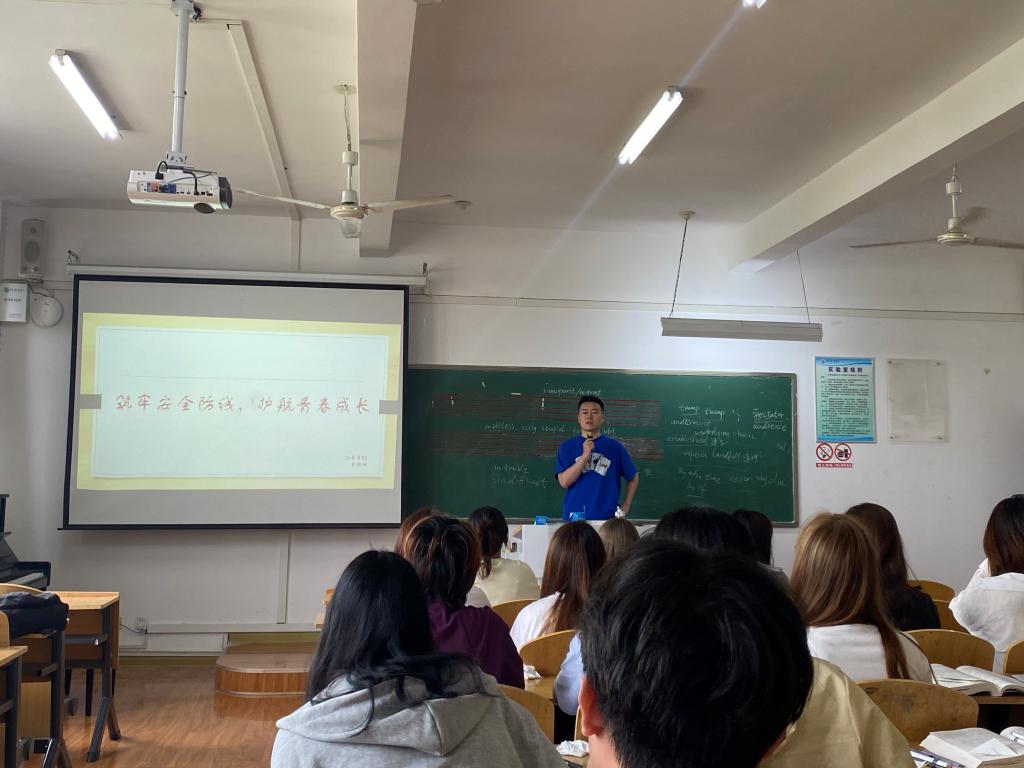 在安全知识讲解环节,内容丰富且实用。网络安全方面,详细介绍了刷单返利、冒充客服、虚假中奖等常见诈骗手段,着重强调不随意透露个人信息、警惕不明链接等防范要点。为了让同学们有更直观的感受,还设置了情景模拟互动,让同学们现场演练“接到诈骗电话该如何应对”;财产安全讲解中,提醒同学们离开宿舍及时锁门,妥善保管贵重物品,外出时在公共场合注意财物安全,避免露富;人身安全板块,从遵守交通规则、拒绝乘坐黑车的交通安全,到谨慎交友、避免深夜外出的社交安全,再到关注情绪变化、学会寻求帮助的心理健康,全方位为同学们保驾护航;消防安全则重点强调宿舍用电规范,严禁使用违规电器,并教授火灾逃生技巧,如熟悉逃生通道、掌握灭火器使用方法等。