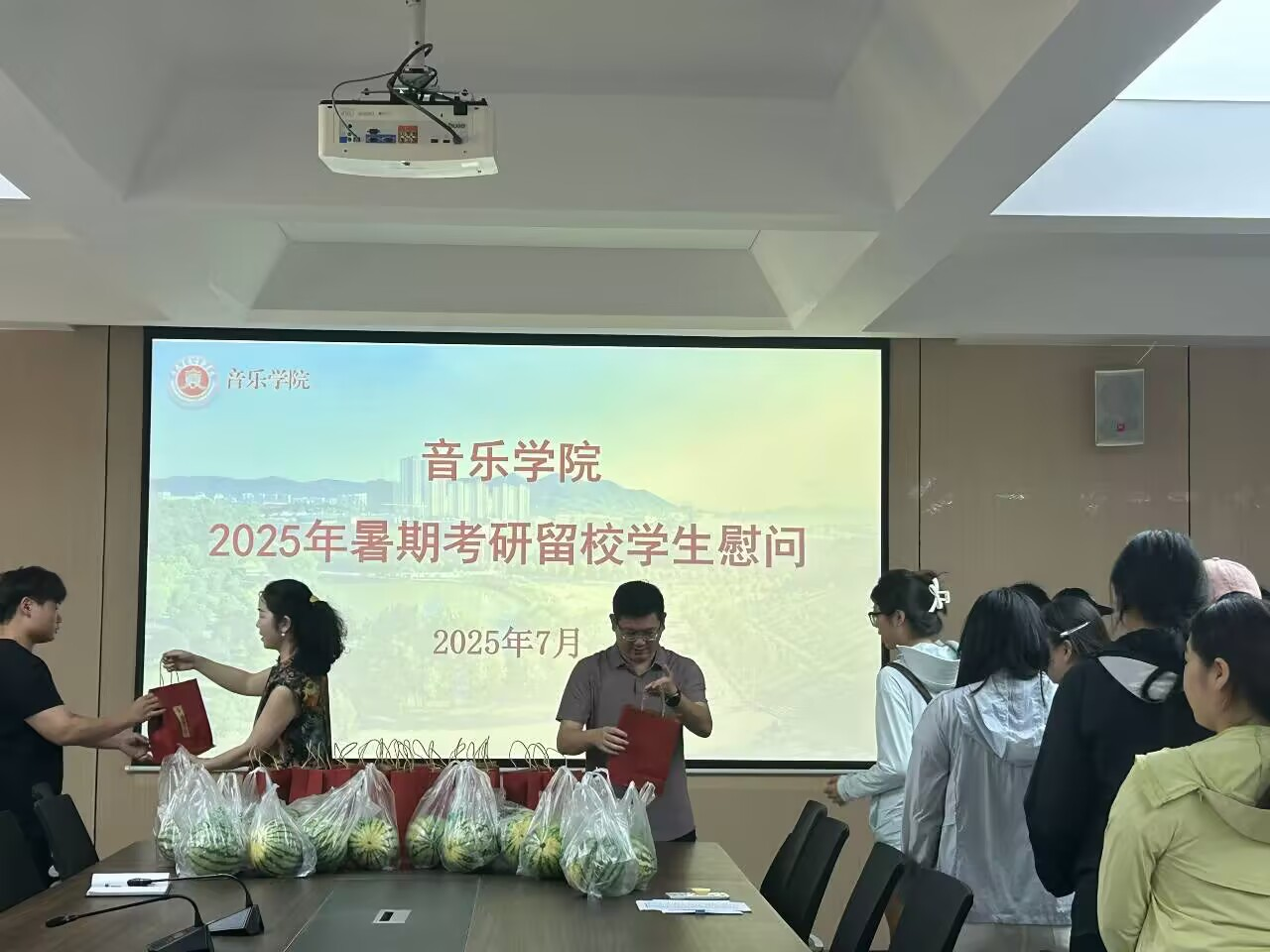 此次慰问活动,不仅让留校考研学生感受到了学院的关爱与支持,也进一步增强了同学们的归属感和凝聚力。音乐学院将继续关注留校学生的需求,为他们提供更加优质的服务和保障,陪伴同学们度过一个充实、愉快的暑假。