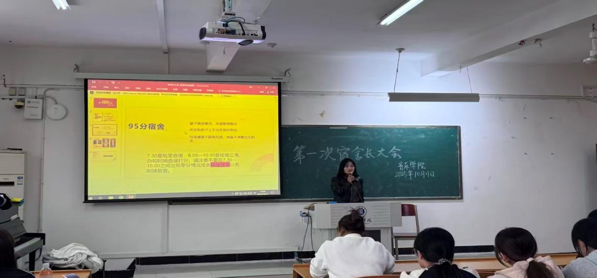 为进一步优化宿舍管理,为同学们营造安全、文明、和谐的宿舍环境,10月11日下午,音乐学院召开了2025-2026学年秋季学期第一次宿舍长大会。辅导员老师赵雪伊,院公寓办全体成员以及100余名宿舍长共同参加了会议。学生干部周远弘主持了会议。