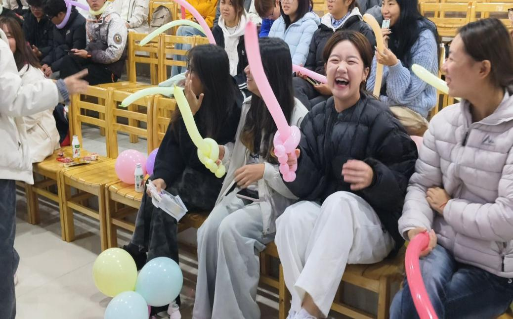 鼓声不停,花传不息,紧接着我们迎来了紧张刺激的“击鼓传花”游戏,谁会是那个幸运儿呢?大家随着音乐传递物品,音乐暂停拿到物品的同学上台表演才艺,大胆展示自我,让这场简单的传递成了全场最热闹的时刻。