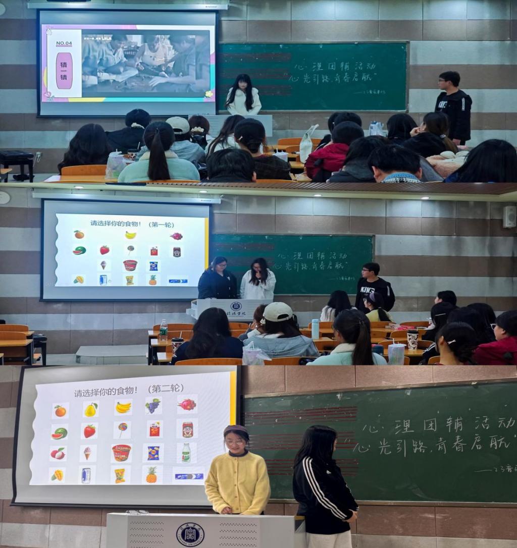 “选择消消乐”游戏则从生活细节切入,关注同学们的情绪与需求。班干部提前准备了印有不同食物图案的图案,同学们需选择最能代表自己当下心情或渴望的食物卡片,与小组伙伴分享背后的故事。这个游戏以轻松的“食物选择”为载体,让同学们在分享中梳理情绪、回忆温暖,学会从生活小事中汲取心理能量,同时也让彼此更深入地了解对方的内心世界。