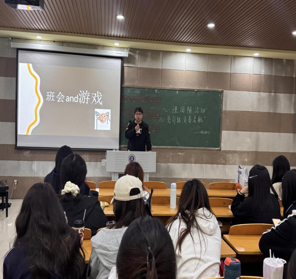 为进一步加强学生心理健康教育,帮助同学们缓解学习生活压力,提升团队凝聚力与情绪调节能力,10月23日下午,音乐学院23音乐本03班在艺术楼202教室开展了以“心光引路,青春启航”为主题的心理健康教育班级团辅活动。辅导员全成和全班55名同学共同参与了此次活动。活动通过“闹钟炸弹”、“快乐传真”、“听歌识曲”等一系列趣味心理小游戏,让同学们在轻松愉悦的氛围中释放压力、增进交流,为青春成长注入温暖力量。