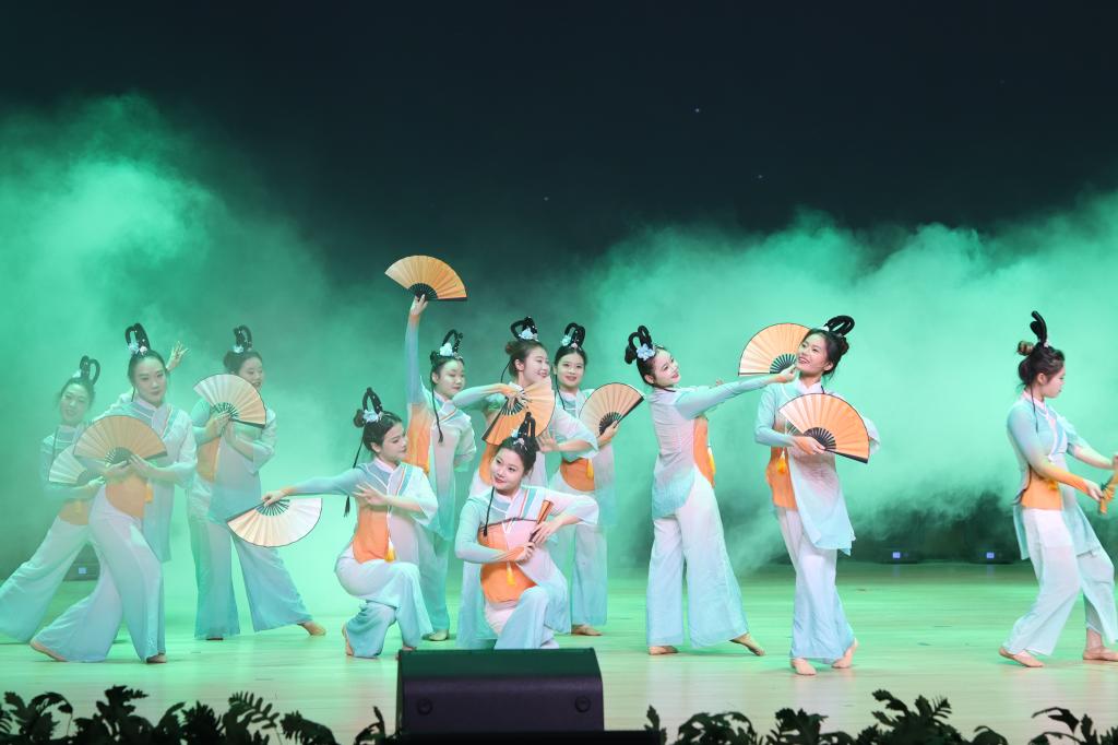 《醉春风》以其灵动的编排与优雅的韵味,展现了学院在古典舞及民族民间舞教学上的深厚底蕴,学生们通过细腻的身段与饱满的情感表达,将传统之美演绎得淋漓尽致。而《悠悠茶花香》则深深植根于信阳本土的茶文化,以优美的舞姿勾勒出茶乡的清新画卷,体现了学院注重将地方文化资源融入教学与创作、培养学生文化传承与创新能力的有益实践。