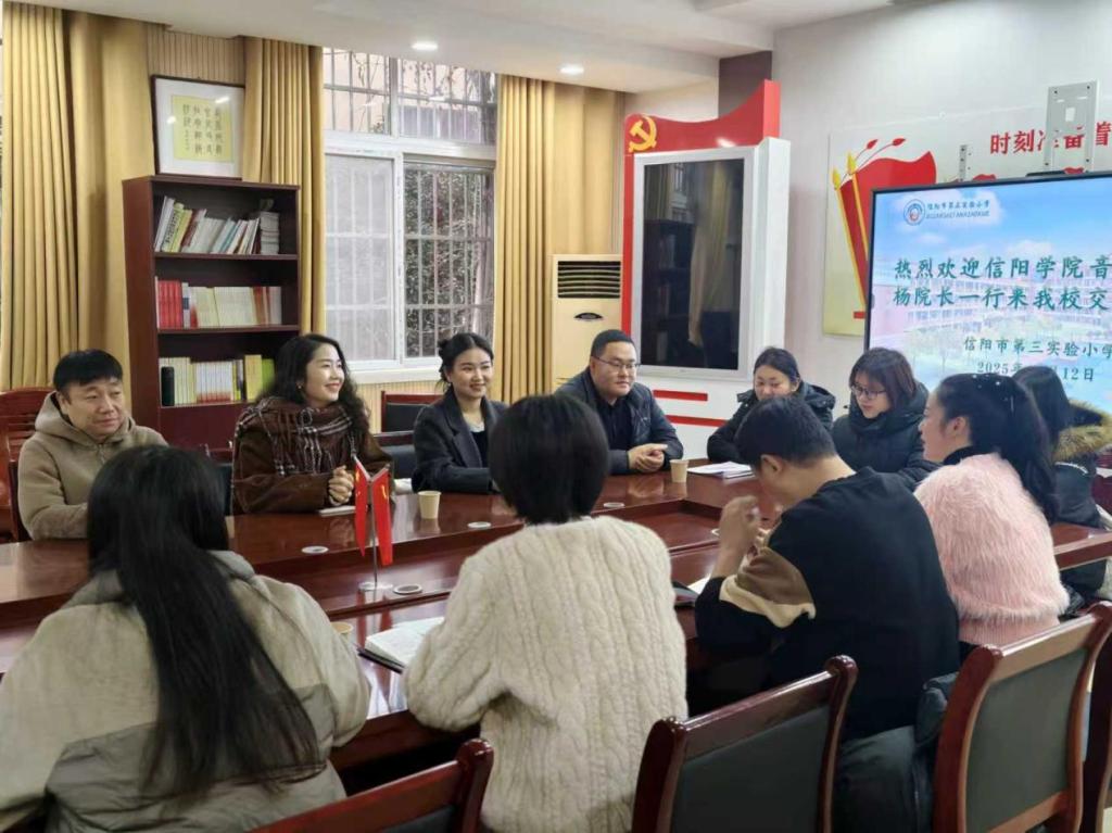 为深入贯彻落实应用型人才培养目标,加强与用人单位的协同联动,拓宽毕业生就业渠道,同时搭建母校与校友的沟通桥梁。12月12日,音乐学院副院长杨辉,钢琴与器乐教研室主任胡世红及毕业班辅导员老师一行赴信阳市第三实验小学开展访企拓岗暨走访校友活动。信阳市第三实验小学校长杨新红、副校长李安、优秀校友叶亚男参加了座谈。