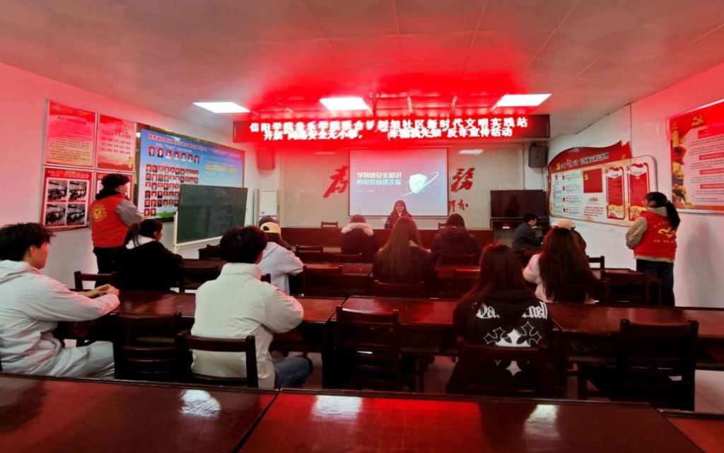 为深入践行法治精神,提升社区居民防范电信网络诈骗的意识和能力,3月14日,信阳学院音乐学院志愿服务队赴松树坦社区开展"学网络安全知识,防电信网络诈骗"主题普法宣讲活动。