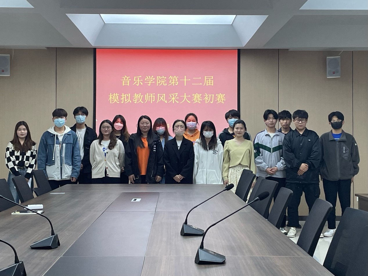 为强化我校“地方性”“应用型”办学定位,巩固师范教育教学成果,培养学生动手实践能力,提高师范生工作技能,展现当代大学生良好的精神风貌,提升学生社会化能力。4月16日,音乐学院学生会在艺术楼215举办音乐学院第十二届模拟教师风采大赛初赛。此次大赛以 “三尺讲台秀芬芳,建团百年立新功”为主题,学生会各部门主席以及参赛选手参加了此次比赛,徐甜甜主持比赛。