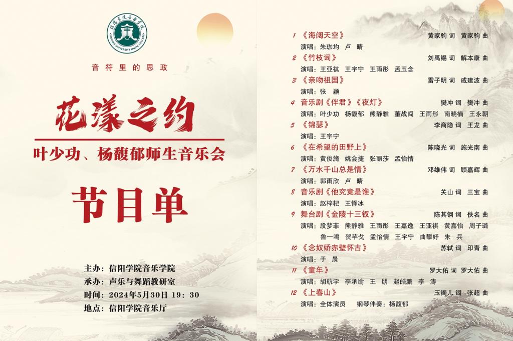 “音符里的思政”系列之“花漾之约”叶少功、杨馥郁教学汇报音乐会活动预告